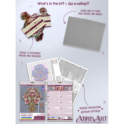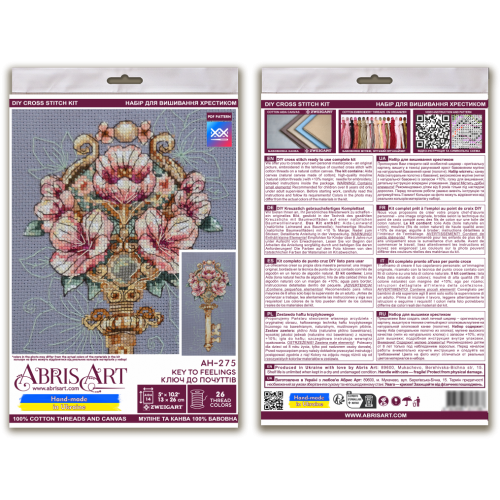 Cross-stitch kits Key to Feelings (Deco Scenes) is a great cross stitch kit from Abris Art, SKU # AH-275, which you can buy right now and get delivery in a matter of days! It will give you unforgettable hours when creating a real handmade masterpiece! It is impossible to buy such a thing ready-made! High-quality materials, detailed instructions - everyone can create an unsurpassed picture, made by own hands. In fact, cross stitching is one of the most popular types of needlework (handmade). Cross-stitching often uses different types of stitches, such as ¼, ½, ¾ stitches, and the needle back stitch. The cross stitch is often combined with other stitches; it can also be of different forms. Sometimes a cross stitch is used in satin stitch embroidery (crewel embroidery), especially in its modern varieties, as well as in cross stitch on canvas (needlepoint). Cross-stitch is often combined with other types of embroidery, such as white Hardanger embroidery, black embroidery (blackwork), canvas embroidery or net embroidery. In addition, cross-stitching can be combined with beadwork with the addition of various embellishments such as sequins, pendants, small buttons and fancy threads. Purchased, embroidered and decorated with taste, Cross-stitch kits Key to Feelings (Deco Scenes) embroidered and decorated with taste will bring an additional touch of warmth and comfort to your home, because its width is: 130 millimeters, and its height: 260 millimeters. Such a picture with a cross will also be a great gift for loved ones - after all, the best gift is made with your own hands! And even the final destination is not important - it is important what emotions will be received during these unsurpassed hours - when you embroider a s from Abris Art. Our author's cross-stitch kits have a stylish modern design, are completed with high-quality cotton canvas (fabric for embroidery) and threads (floss) of European production, which are conveniently placed on a cardboard organizer, as well as a cross-stitch needle, a detailed color symbolic scheme, where all types of cross stitches used and recommendations for the design of cross-stitched work, so that even a beginner can easily navigate the embroidery process. Attention to all who want to purchase a set! Some of our cross stitch patterns include a QR code that allows embroiderers using the SAGA app to access the cross stitch pattern exported to it.