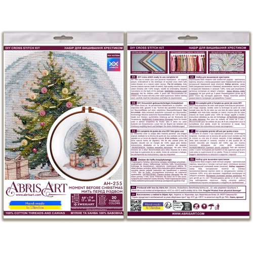 Cross-stitch kits Moment Before Christmas (Deco Scenes) is a great cross stitch kit from Abris Art, SKU # AH-255, which you can buy right now and get delivery in a matter of days! It will give you unforgettable hours when creating a real handmade masterpiece! It is impossible to buy such a thing ready-made! High-quality materials, detailed instructions - everyone can create an unsurpassed picture, made by own hands. In fact, cross stitching is one of the most popular types of needlework (handmade). Cross-stitching often uses different types of stitches, such as ¼, ½, ¾ stitches, and the needle back stitch. The cross stitch is often combined with other stitches; it can also be of different forms. Sometimes a cross stitch is used in satin stitch embroidery (crewel embroidery), especially in its modern varieties, as well as in cross stitch on canvas (needlepoint). Cross-stitch is often combined with other types of embroidery, such as white Hardanger embroidery, black embroidery (blackwork), canvas embroidery or net embroidery. In addition, cross-stitching can be combined with beadwork with the addition of various embellishments such as sequins, pendants, small buttons and fancy threads. Purchased, embroidered and decorated with taste, Cross-stitch kits Moment Before Christmas (Deco Scenes) embroidered and decorated with taste will bring an additional touch of warmth and comfort to your home, because its width is: 170 millimeters, and its height: 190 millimeters. Such a picture with a cross will also be a great gift for loved ones - after all, the best gift is made with your own hands! And even the final destination is not important - it is important what emotions will be received during these unsurpassed hours - when you embroider a s from Abris Art. Our author's cross-stitch kits have a stylish modern design, are completed with high-quality cotton canvas (fabric for embroidery) and threads (floss) of European production, which are conveniently placed on a cardboard organizer, as well as a cross-stitch needle, a detailed color symbolic scheme, where all types of cross stitches used and recommendations for the design of cross-stitched work, so that even a beginner can easily navigate the embroidery process. Attention to all who want to purchase a set! Some of our cross stitch patterns include a QR code that allows embroiderers using the SAGA app to access the cross stitch pattern exported to it.