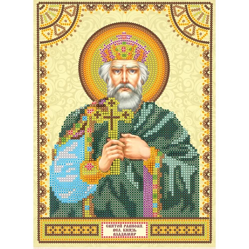 Each carefully assembled box of Icon's charts on artistic canvas St. Vladimir after purchase and delivery you will find:a large piece of natural art canvas with a printed pattern for beadwork (fabric for embroidery) is larger than the size of the picture - 230 x 170 mm.< - with enough margin to comfortably embroider and decorate the finished picture! And also, most importantly detailed instructions, a pattern for embroidery with beads, specially developed by our designers for each plot separately! It is so convenient and understandable that even a person who wants to try his hand at beadwork for the first time and buys this scheme of icon will understand everything in 5 minutes!