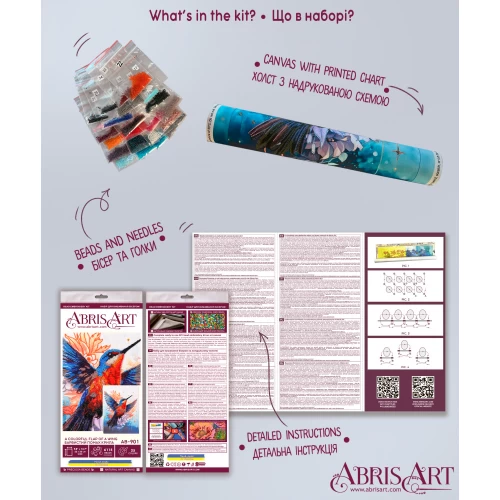 Main Bead Embroidery Kit A colorful flap of a wing (Animals) is a great DIY kit for beadwork (bead embroidery) from Abris Art with article AB-901 which you can buy right now and get delivery in a few days! This complete convenient set will give you an unforgettable watch when creating a real masterpiece! It is impossible to buy such a thing ready! Quality materials - natural canvas (textile) with bright high-precision printing image-scheme, the world's best Preciosa Ornela beads (Czech Republic), beaded needles from Japan and detailed instructions - everyone can create an unsurpassed picture of beads, made by hand . Beadwork has been known since ancient times. From ancient times, craftswomen admired their magnificent embroidery skills, first with pearls, and then from the middle of the 17th century with colored glass beads. Clothes were decorated with bugle, paintings were embroidered with images of different landscapes, churches, icons, etc. In our time, beadwork has become popular again. Elements of beads are used in the decoration of clothing, which gives it an original and neat look. Many styles in fashion do not do without beaded jewelry. Beads, as a material, have unlimited color possibilities, it is also available to everyone thanks to the Czech company Preciosa Ornela. Modern needlewomen not only successfully decorate clothes, but also shoes, purses, cases and handbags. Beadwork is very popular in patterns and sets depicting flowers, birds, animals and other subjects. For many women, beadwork has become a favorite hobby. This kind of creativity requires special skills, patience, dexterity and accuracy. Great mood and developed imagination play a big role. And the purchased, embroidered and tastefully decorated picture Main Bead Embroidery Kit A colorful flap of a wing (Animals) will bring an extra touch of warmth and comfort to your home, because its width is: 250 millimeters, height: 350 millimeters, and the number of beads (beads); 6115 pcs. Such a picture of beads will also be a great gift for loved ones - because the best gift made by hand! And it doesn't even matter the ultimate destination - it's important what emotions will be received during these unsurpassed hours - when you embroider a set of beads from Abris Art. Our original schemes and kits for beadwork have a stylish modern design, complete with high-quality cotton base - canvas (embroidery taknya), the world's best beads Preciosa Ornela (Czech Republic), bead needles from Japan and detailed color symbol the scheme with a key, the instruction with the description of all types of applied seams by beads and recommendations on registration of work sewn by beads that even the beginner was easily guided in the process of embroidery. Attention everyone who wants to buy this kit for beadwork (bead embroidery)! When embroidering with beads on canvas, a scheme is used - a pattern applied to the fabric, which greatly simplifies the work process, because the canvas already has a scheme for embroidery. On the side of the diagram is the key - the number corresponds to the color of the beads and the designation on the diagram. For easy readability, the color of the symbol on the fabric may differ from the actual color of the beads in the Main Bead Embroidery Kit A colorful flap of a wing (Animals) set. Before you start, you can stretch the patterned fabric (canvas) on a wooden frame with the help of buttons, you can also embroider on rectangular hoops or just hold the embroidery pattern from the set on your hands. If the hoops are large, the canvas can be "grown" by marking additional strips of fabric at the edges, it depends on the canvas you choose. It is better to embroider with nylon or cotton threads, you can use 100% PE, white or beige in one thread. If there is wax - wax the thread (press the thread with your fingers to the wax and stretch through it, remove excess wax by pulling the thread through your fingers). This is necessary so that the thread does not twist or get confused.