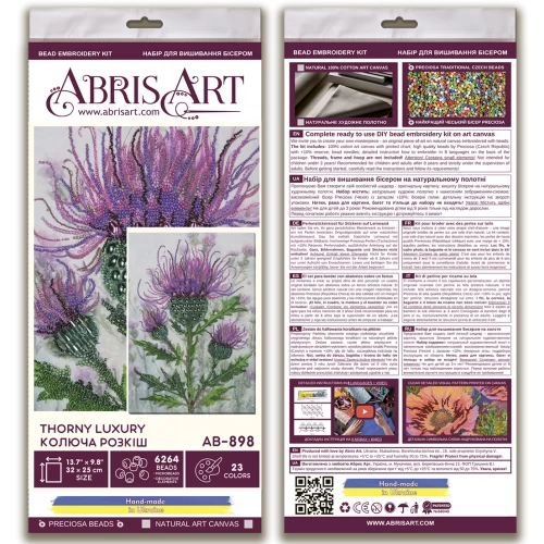 Main Bead Embroidery Kit Thorny luxury (Deco Scenes) is a great DIY kit for beadwork (bead embroidery) from Abris Art with article AB-898 which you can buy right now and get delivery in a few days! This complete convenient set will give you an unforgettable watch when creating a real masterpiece! It is impossible to buy such a thing ready! Quality materials - natural canvas (textile) with bright high-precision printing image-scheme, the world's best Preciosa Ornela beads (Czech Republic), beaded needles from Japan and detailed instructions - everyone can create an unsurpassed picture of beads, made by hand . Beadwork has been known since ancient times. From ancient times, craftswomen admired their magnificent embroidery skills, first with pearls, and then from the middle of the 17th century with colored glass beads. Clothes were decorated with bugle, paintings were embroidered with images of different landscapes, churches, icons, etc. In our time, beadwork has become popular again. Elements of beads are used in the decoration of clothing, which gives it an original and neat look. Many styles in fashion do not do without beaded jewelry. Beads, as a material, have unlimited color possibilities, it is also available to everyone thanks to the Czech company Preciosa Ornela. Modern needlewomen not only successfully decorate clothes, but also shoes, purses, cases and handbags. Beadwork is very popular in patterns and sets depicting flowers, birds, animals and other subjects. For many women, beadwork has become a favorite hobby. This kind of creativity requires special skills, patience, dexterity and accuracy. Great mood and developed imagination play a big role. And the purchased, embroidered and tastefully decorated picture Main Bead Embroidery Kit Thorny luxury (Deco Scenes) will bring an extra touch of warmth and comfort to your home, because its width is: 350 millimeters, height: 250 millimeters, and the number of beads (beads); 6264 pcs. Such a picture of beads will also be a great gift for loved ones - because the best gift made by hand! And it doesn't even matter the ultimate destination - it's important what emotions will be received during these unsurpassed hours - when you embroider a set of beads from Abris Art. Our original schemes and kits for beadwork have a stylish modern design, complete with high-quality cotton base - canvas (embroidery taknya), the world's best beads Preciosa Ornela (Czech Republic), bead needles from Japan and detailed color symbol the scheme with a key, the instruction with the description of all types of applied seams by beads and recommendations on registration of work sewn by beads that even the beginner was easily guided in the process of embroidery. Attention everyone who wants to buy this kit for beadwork (bead embroidery)! When embroidering with beads on canvas, a scheme is used - a pattern applied to the fabric, which greatly simplifies the work process, because the canvas already has a scheme for embroidery. On the side of the diagram is the key - the number corresponds to the color of the beads and the designation on the diagram. For easy readability, the color of the symbol on the fabric may differ from the actual color of the beads in the Main Bead Embroidery Kit Thorny luxury (Deco Scenes) set. Before you start, you can stretch the patterned fabric (canvas) on a wooden frame with the help of buttons, you can also embroider on rectangular hoops or just hold the embroidery pattern from the set on your hands. If the hoops are large, the canvas can be "grown" by marking additional strips of fabric at the edges, it depends on the canvas you choose. It is better to embroider with nylon or cotton threads, you can use 100% PE, white or beige in one thread. If there is wax - wax the thread (press the thread with your fingers to the wax and stretch through it, remove excess wax by pulling the thread through your fingers). This is necessary so that the thread does not twist or get confused.