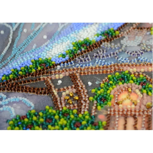 The set is additionally completed with Preciosa beads No. 13 - microbeads - 4 colors, a needle for embroidery with microbeads, decorative stones - glass - rondel shape 2 types (20pcs), decorative sequins - 34pcs. The possibility of gallery design of the embroidered picture is provided (without baguette, without passepartout).