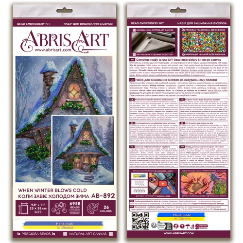 Main Bead Embroidery Kit When winter blows cold (Winter tale) is a great DIY kit for beadwork (bead embroidery) from Abris Art with article AB-892 which you can buy right now and get delivery in a few days! This complete convenient set will give you an unforgettable watch when creating a real masterpiece! It is impossible to buy such a thing ready! Quality materials - natural canvas (textile) with bright high-precision printing image-scheme, the world's best Preciosa Ornela beads (Czech Republic), beaded needles from Japan and detailed instructions - everyone can create an unsurpassed picture of beads, made by hand . Beadwork has been known since ancient times. From ancient times, craftswomen admired their magnificent embroidery skills, first with pearls, and then from the middle of the 17th century with colored glass beads. Clothes were decorated with bugle, paintings were embroidered with images of different landscapes, churches, icons, etc. In our time, beadwork has become popular again. Elements of beads are used in the decoration of clothing, which gives it an original and neat look. Many styles in fashion do not do without beaded jewelry. Beads, as a material, have unlimited color possibilities, it is also available to everyone thanks to the Czech company Preciosa Ornela. Modern needlewomen not only successfully decorate clothes, but also shoes, purses, cases and handbags. Beadwork is very popular in patterns and sets depicting flowers, birds, animals and other subjects. For many women, beadwork has become a favorite hobby. This kind of creativity requires special skills, patience, dexterity and accuracy. Great mood and developed imagination play a big role. And the purchased, embroidered and tastefully decorated picture Main Bead Embroidery Kit When winter blows cold (Winter tale) will bring an extra touch of warmth and comfort to your home, because its width is: 250 millimeters, height: 280 millimeters, and the number of beads (beads); 6958 pcs. Such a picture of beads will also be a great gift for loved ones - because the best gift made by hand! And it doesn't even matter the ultimate destination - it's important what emotions will be received during these unsurpassed hours - when you embroider a set of beads from Abris Art. Our original schemes and kits for beadwork have a stylish modern design, complete with high-quality cotton base - canvas (embroidery taknya), the world's best beads Preciosa Ornela (Czech Republic), bead needles from Japan and detailed color symbol the scheme with a key, the instruction with the description of all types of applied seams by beads and recommendations on registration of work sewn by beads that even the beginner was easily guided in the process of embroidery. Attention everyone who wants to buy this kit for beadwork (bead embroidery)! When embroidering with beads on canvas, a scheme is used - a pattern applied to the fabric, which greatly simplifies the work process, because the canvas already has a scheme for embroidery. On the side of the diagram is the key - the number corresponds to the color of the beads and the designation on the diagram. For easy readability, the color of the symbol on the fabric may differ from the actual color of the beads in the Main Bead Embroidery Kit When winter blows cold (Winter tale) set. Before you start, you can stretch the patterned fabric (canvas) on a wooden frame with the help of buttons, you can also embroider on rectangular hoops or just hold the embroidery pattern from the set on your hands. If the hoops are large, the canvas can be "grown" by marking additional strips of fabric at the edges, it depends on the canvas you choose. It is better to embroider with nylon or cotton threads, you can use 100% PE, white or beige in one thread. If there is wax - wax the thread (press the thread with your fingers to the wax and stretch through it, remove excess wax by pulling the thread through your fingers). This is necessary so that the thread does not twist or get confused.
