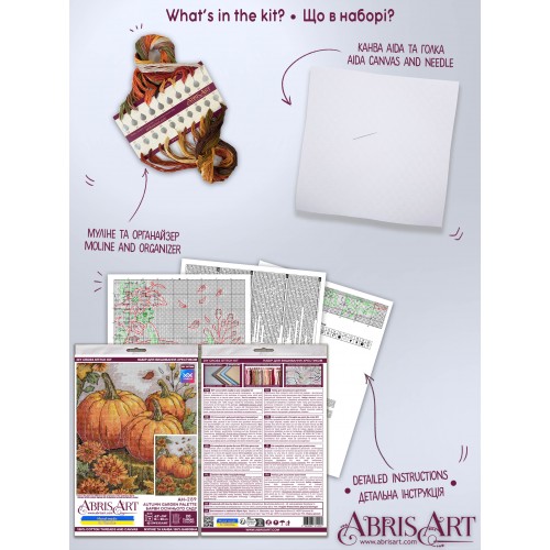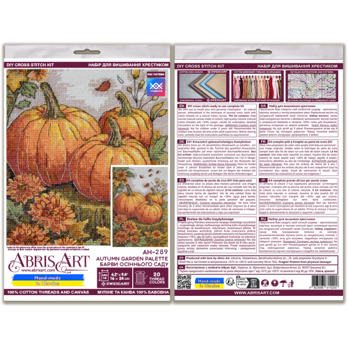 Cross-stitch kits Autumn garden palette (Deco Scenes) is a great cross stitch kit from Abris Art, SKU # AH-289, which you can buy right now and get delivery in a matter of days! It will give you unforgettable hours when creating a real handmade masterpiece! It is impossible to buy such a thing ready-made! High-quality materials, detailed instructions - everyone can create an unsurpassed picture, made by own hands. In fact, cross stitching is one of the most popular types of needlework (handmade). Cross-stitching often uses different types of stitches, such as ¼, ½, ¾ stitches, and the needle back stitch. The cross stitch is often combined with other stitches; it can also be of different forms. Sometimes a cross stitch is used in satin stitch embroidery (crewel embroidery), especially in its modern varieties, as well as in cross stitch on canvas (needlepoint). Cross-stitch is often combined with other types of embroidery, such as white Hardanger embroidery, black embroidery (blackwork), canvas embroidery or net embroidery. In addition, cross-stitching can be combined with beadwork with the addition of various embellishments such as sequins, pendants, small buttons and fancy threads. Purchased, embroidered and decorated with taste, Cross-stitch kits Autumn garden palette (Deco Scenes) embroidered and decorated with taste will bring an additional touch of warmth and comfort to your home, because its width is: 160 millimeters, and its height: 240 millimeters. Such a picture with a cross will also be a great gift for loved ones - after all, the best gift is made with your own hands! And even the final destination is not important - it is important what emotions will be received during these unsurpassed hours - when you embroider a s from Abris Art. Our author's cross-stitch kits have a stylish modern design, are completed with high-quality cotton canvas (fabric for embroidery) and threads (floss) of European production, which are conveniently placed on a cardboard organizer, as well as a cross-stitch needle, a detailed color symbolic scheme, where all types of cross stitches used and recommendations for the design of cross-stitched work, so that even a beginner can easily navigate the embroidery process. Attention to all who want to purchase a set! Some of our cross stitch patterns include a QR code that allows embroiderers using the SAGA app to access the cross stitch pattern exported to it.