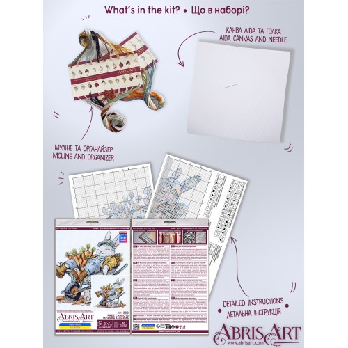 In each carefully assembled box Cross-stitch kits Free carrots (Deco Scenes) after purchase and delivery you will find: a large piece of canvas (embroidery fabric) larger than the size of the picture - 180 x 200 mm. - with enough margin to comfortably embroider and decorate the finished picture! As well as a special needle for cross-stitching and all the necessary threads (floss) - 30 colors on a convenient organizer, of course - with a margin, more {Длина нитей, м} meters, because you can embroider with a cross in different ways. And most importantly - detailed instructions, a cross-stitch pattern, specially designed by our designers for each set separately! It is so convenient and understandable that a person who wants to try his hand at cross-stitch for the first time and buys a kit - will understand everything in 5 minutes!