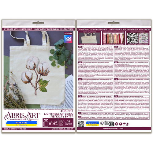 WARNING! A QR code is attached to the scheme, by which embroiderers using the SAGA application can receive the scheme exported to it. The set comes with 44m of thread, a shopper and an additional doubler. Create a stylish and unique accessory with your own hands! This set will allow you to not just embroider - but turn an ordinary eco-bag into a real work of art. Perfect for creative recreation, a gift or a stylish accessory! After the embroidery is completed, the shopper can be used every day - it is durable, comfortable and looks unique.