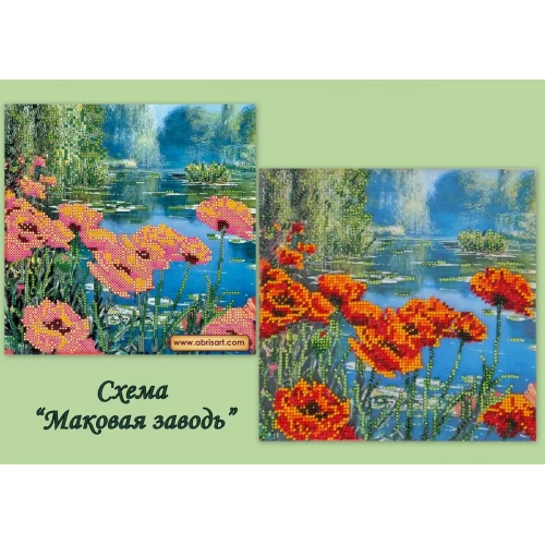 Charts on artistic canvas Poppy’s by the Lake, AC-401 by Abris Art - buy online! ✿ Fast delivery ✿ Factory price ✿ Wholesale and retail ✿ Purchase Scheme for embroidery with beads on canvas (200x200 mm)